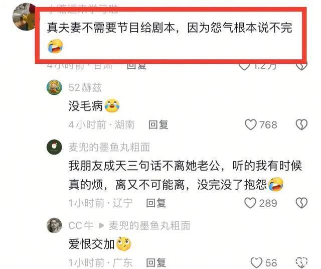 真夫妻不需要节目给剧本,因为怨气根本说不完